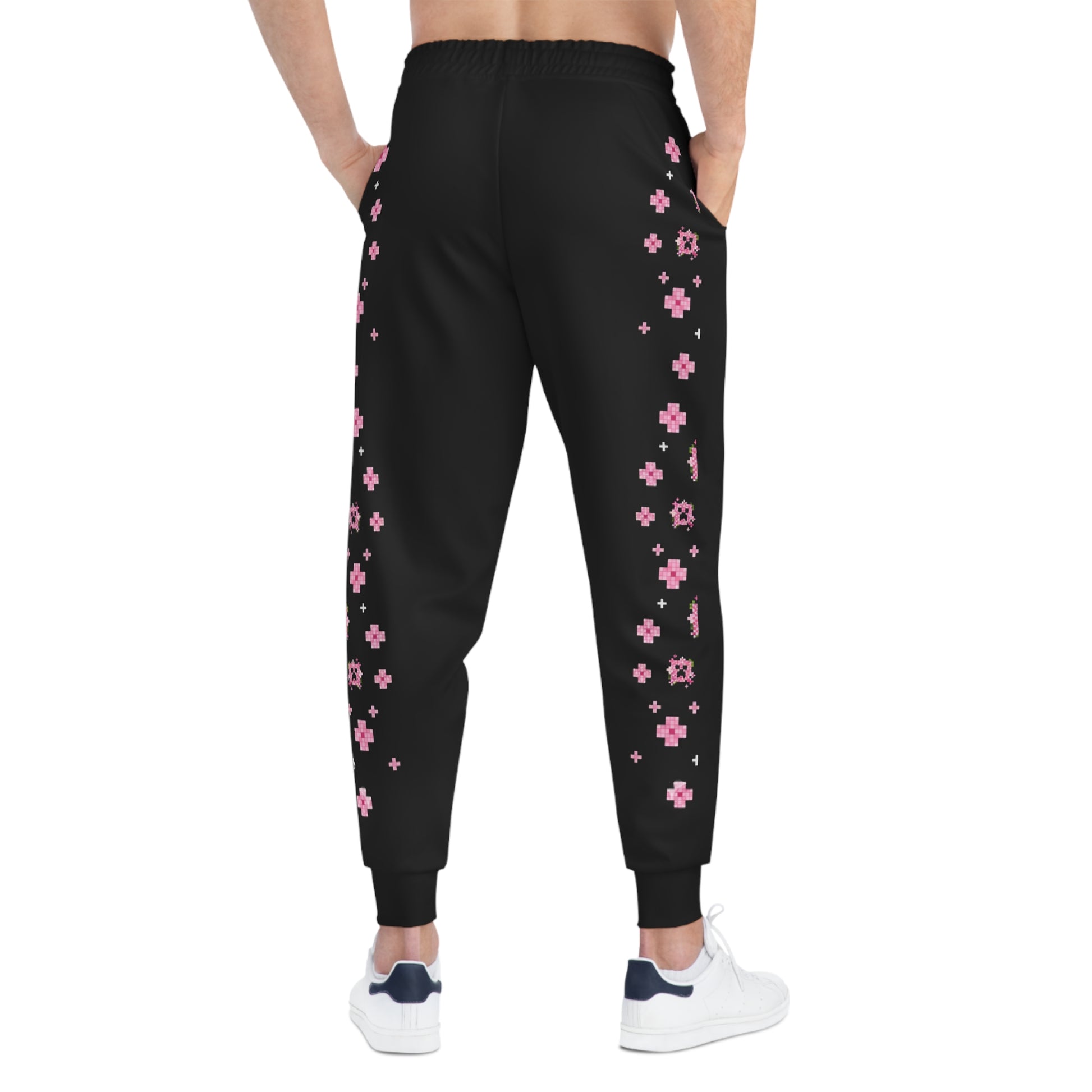 Black Floral Stripe Joggers + Pink Cherry Blossom Athletic Sweatpants