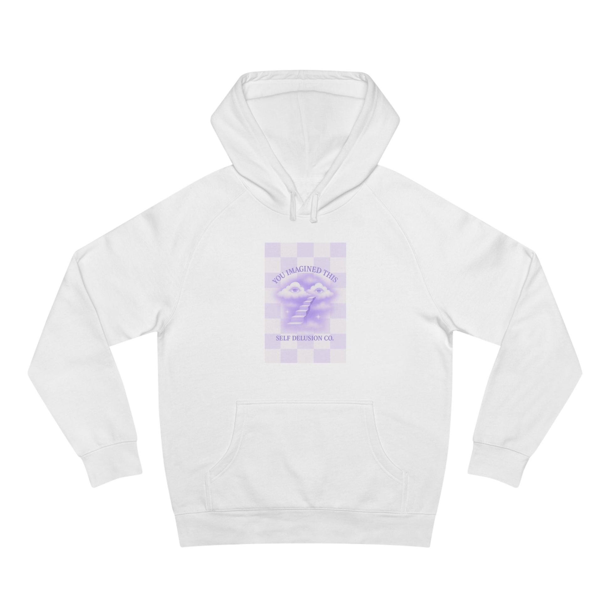 A soft, mid-weight hoodie that feels like a familiar companion from the first wear. The subtle lavender graphic sits over a checkerboard field, giving a gentle retro vibe without shouting for attention.